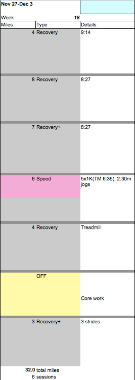 I was picking up from square one of the plan (former) Coach Sandra had given me way back in July. I got back up to 50 mpw and did some hard workouts. We were working long distance at this point and would fall out of touch soon after. That was actually okay with me. It removed some pressure.